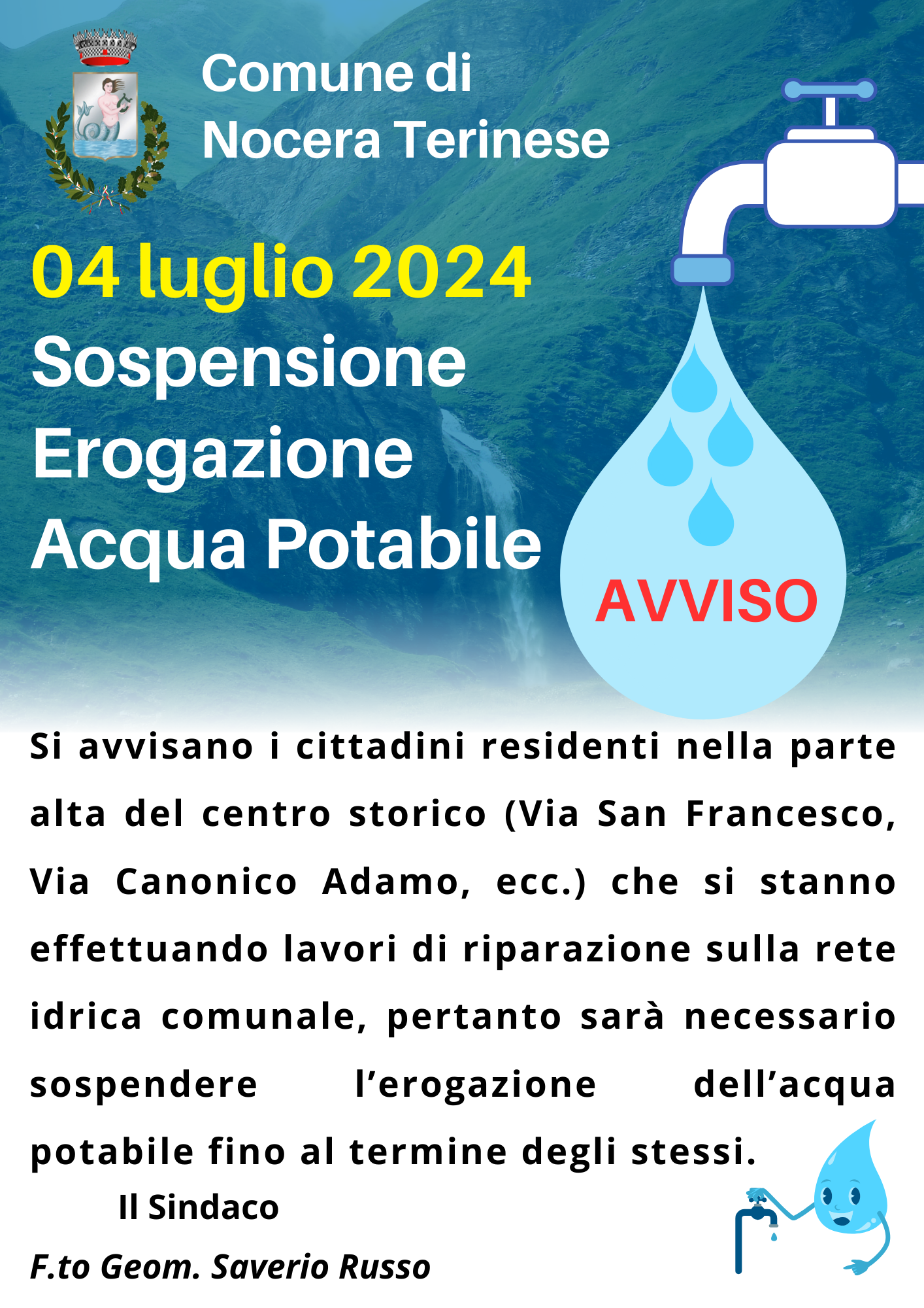 AVVISO - Sospensione l’erogazione dell’acqua potabile .