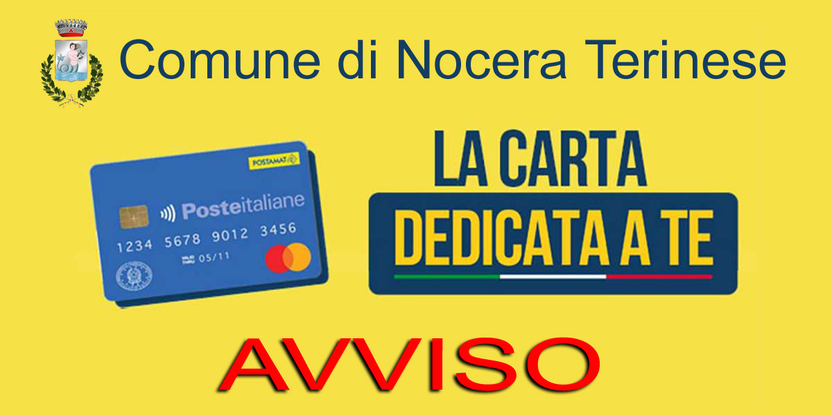 Si avvisa la cittadinanza che a partire da lunedì 16 Settembre 2024, presso l’Ufficio Amministrativo del Comune di Nocera Terinese possono essere ritirate le comunicazioni per i nuovi beneficiari della Carta “Dedicata a te” anno 2024;